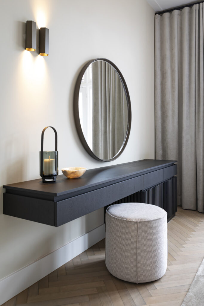 Na de grote keuzes voor keuken, vloeren en badkamer, richt ik me op meubelen en accessoires. Ik begeleid het aankoopproces en zorg voor de perfecte finishing touch, zodat het ontwerp zijn uiteindelijke uitstraling krijgt. Wie weet komt uw project binnenkort wel op mijn website te staan!